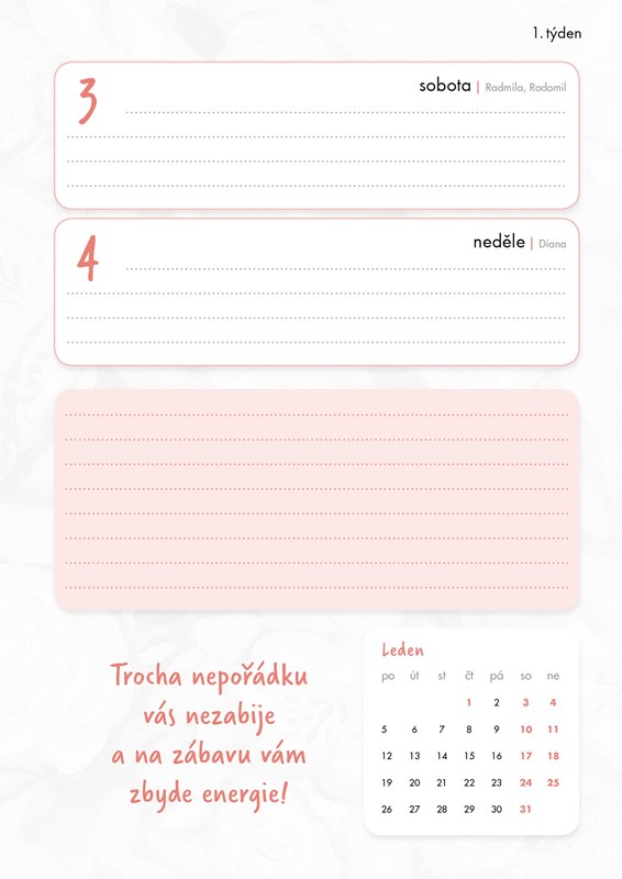 Praktický i zábavný zápisník Haliny Pawlowské je plný laskavého humoru i rodinných receptů, které pohladí na duši i na jazyku. Najdete v něm také osmisměrky, sudoku a omalovánkové mandaly pro chvíle odpočinku. Ideální dárek pro každého, kdo se rád usměje, bere život s nadhledem a dovede se radovat z drobností všedního dne.