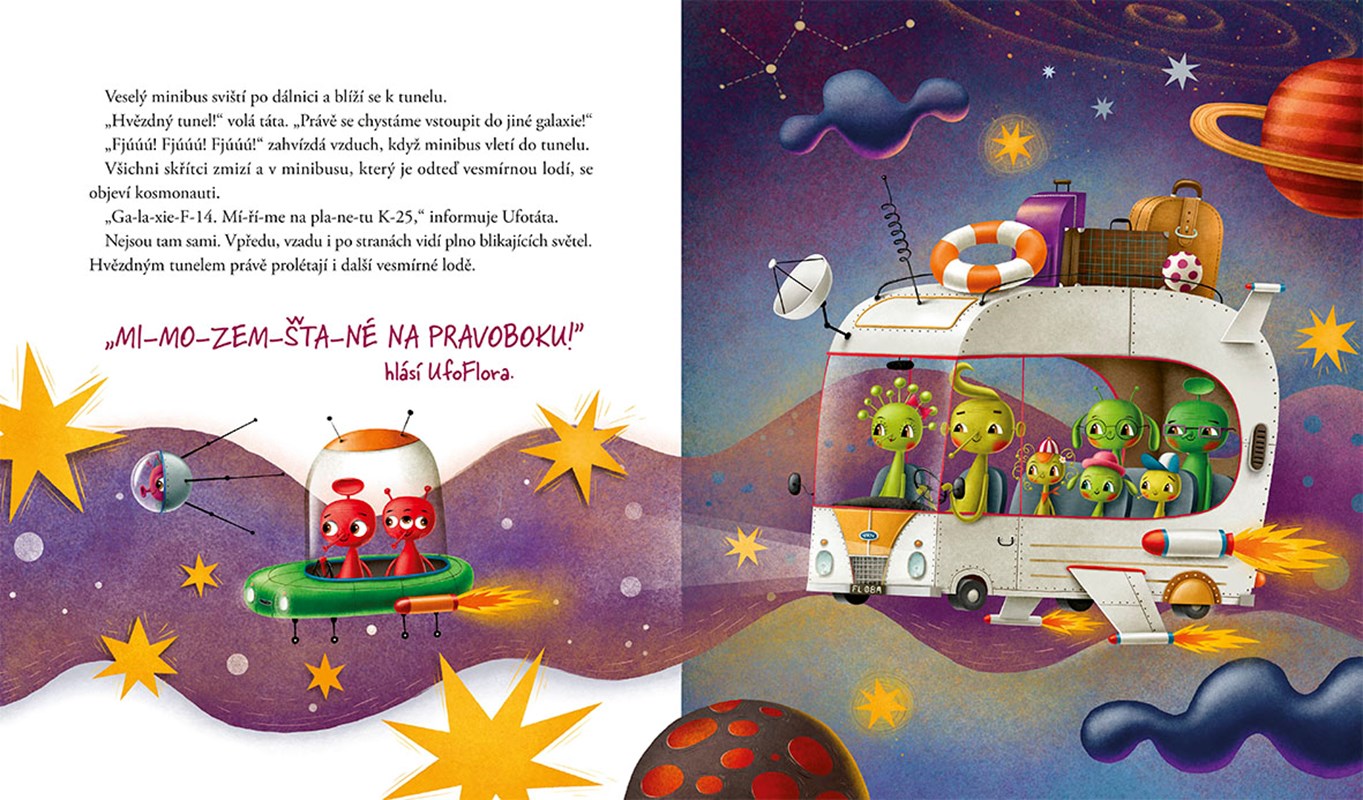 Holčička Flora se svou rodinou a nejlepší kamarádkou Leou vyráží na návštěvu k prarodičům na venkov. Protože je cesta dlouhá a nudná, střídají se rodiče ve vymýšlení kouzelných zemí, kterými projíždí. A tak se ocitnou v jurském parku plném dinosaurů, i v zemi trpaslíků. Pak se jejich auto promění v kosmickou loď a zamíří do jiné galaxie, ale nakonec přistane v údolí, kde žije trol. A dojde i na pozorování ptáků, návštěvu indiánů, setkání s ledními medvědy a mnoho dalších dobrodružství. Užijte si je taky!