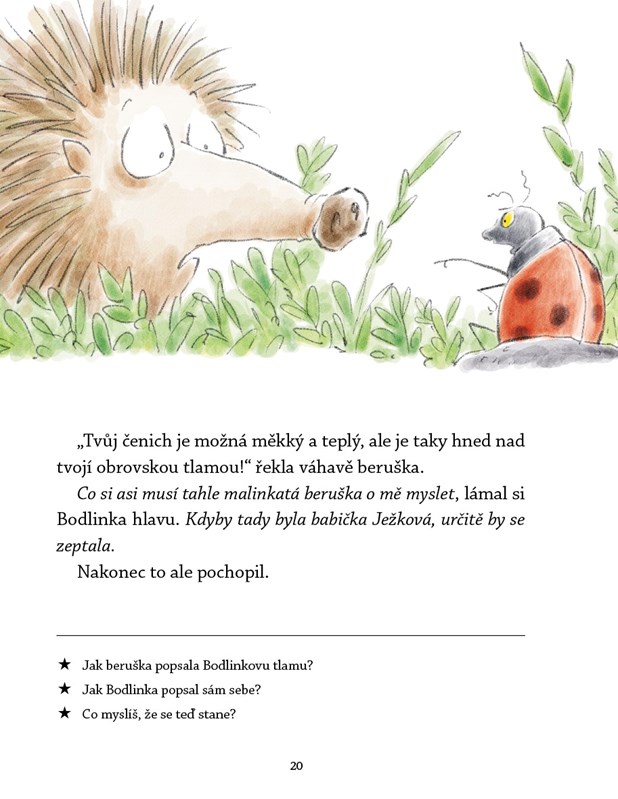 Půvabný příběh s doprovodnými otázkami o statečnosti, síle přátelství a umění pomáhat. Pro milovníky ježků každého věku!