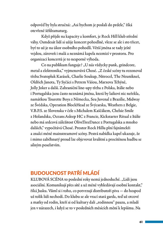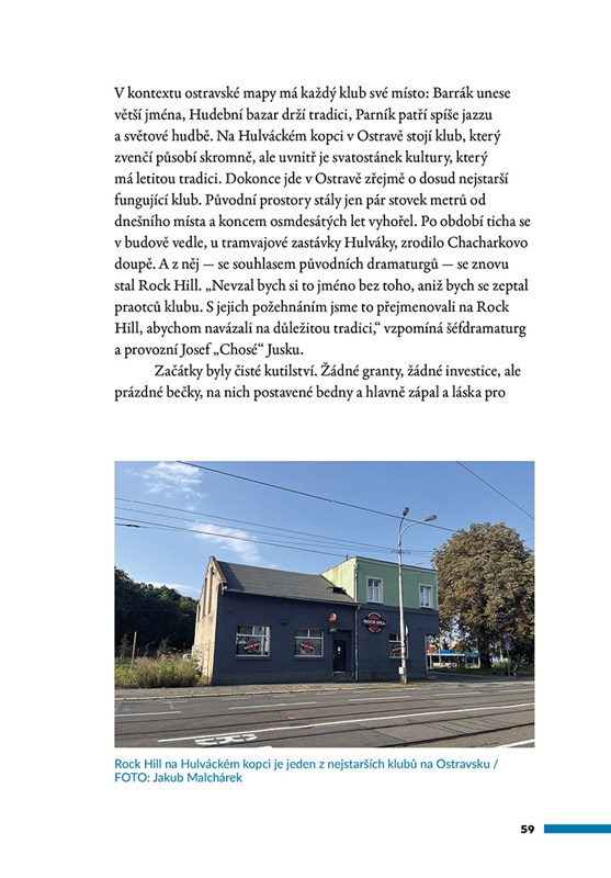 Ostrava a okolí mají svůj nezaměnitelný rytmus – a ten se roky vytvářel v klubech. Tento hudební průvodce mapuje místa, kde se potkávali muzikanti, fanoušci i budoucí legendy od Barráku, Fabricu, Hudebního bazaru či Heligonky až po kluby, které už zmizely z mapy. Ze vzpomínek pamětníků a rozhovorů s hudebníky i provozovateli skládá Jakub Malchárek živý portrét klubové scény. Autentické historky, souvislosti i dobové fotografie zachycují éru, kdy hudba voněla svobodou a kluby byly nejen místem koncertů.