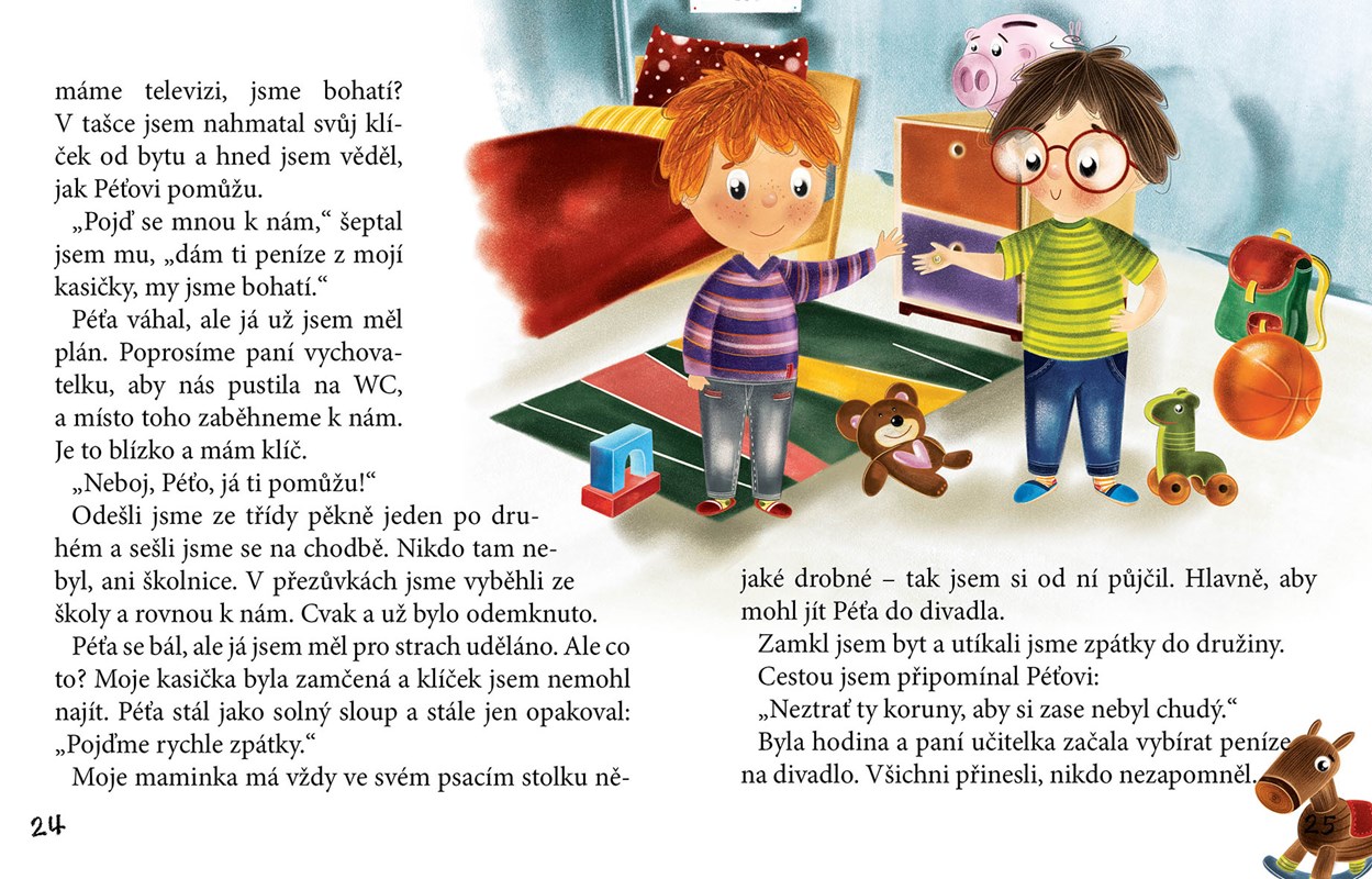 V knížce se dočtete o veselých zážitcích malého žáka třídy 1. E Milana Lavického. Vypravování je podané z pohledu hlavního hrdiny v první osobě, takže malí prvňáci budou mít možnost s Milánkem všechno téměř autenticky prožívat.