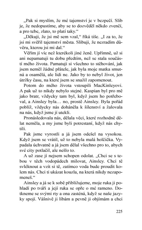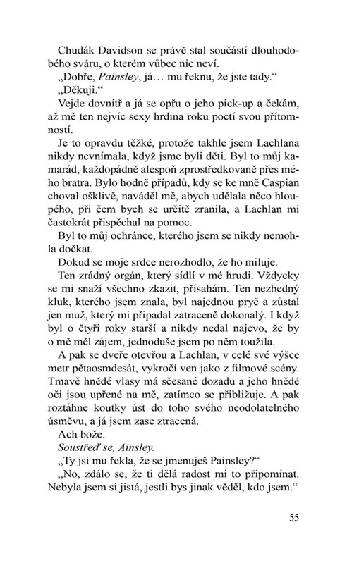 Lachlan West byl odjakživa nejlepším přítelem mého bratra a láskou mého života. Problém však je, že mě před čtyřmi lety políbil a od té doby se mnou už nikdy nepromluvil. Dlouho se mi dařilo předstírat, že neexistuje, pak jsem ale dostala za úkol napsat článek o bývalých vysokoškolských sportovcích a zjistila jsem, že hlavním hrdinou mého příběhu má být právě tento sexy svobodný otec z mé minulosti… Odhodlaná ohromit svého šéfredaktora úžasným článkem o sportu se vydávám do Ember Falls, připravená čelit svým strachům – a muži, kterého miluji…