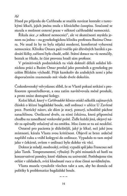 Literárním zpracováním osudu lékařky přezdívané „český Albert Schweitzer“ přiblížila Ilona Borská výjimečnou osobnost Vlasty Kálalové-Di Lottiové. Léčila, milovala, studovala, přednášela a cestovala s umanutou odvahou jít za svým snem. Její mimořádné nadání však bylo vykoupeno i nezměrným utrpením. Rodačka z Bernartic u Tábora, mladá nadaná absolventka lékařské fakulty, se ve dvacátých letech minulého století vydala sama do Orientu a založila v Bagdádu československou nemocnici. Jako žena-lékařka a navíc Evropanka se musela zpočátku potýkat s nedůvěrou místních, kteří často stále spoléhali na pověry a domácí léčitelství. Protože ale mluvila plynně arabsky, rychle si získala klientelu – především z řad žen, kterým do té doby kvalitní péče chyběla. Smyslem jejího života bylo pomáhat lidem. Přes osobní tragédii nikdy nezatrpkla a věnovala veškeré své síly těm, kteří to nejvíce potřebovali – trpícím.