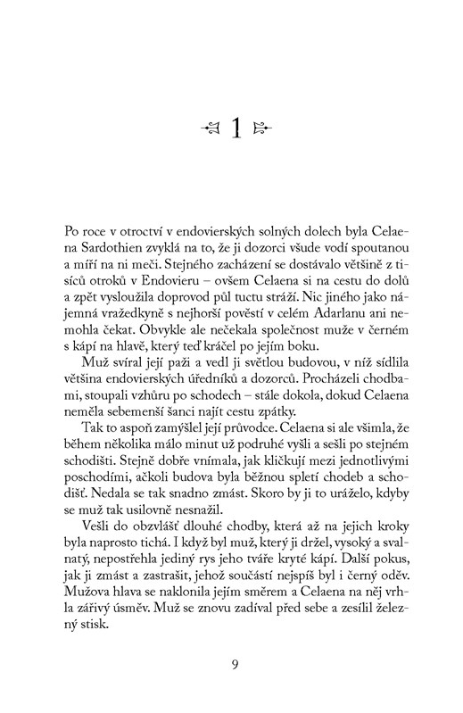 V temných a špinavých solných dolech Endovieru si doživotní trest odpykává osmnáctiletá dívka. Celaene byla od dětství trénovaná k jednomu jedinému úkolu – stát se tím nejlepším zabijákem na světě, rychlým, tichým, neodhalitelným a všehoschopným. Ale udělala chybu. Nechala se chytit. Pak však dostala druhou šanci a uvědomila si, že je jen na ní, jak s ní naloží.