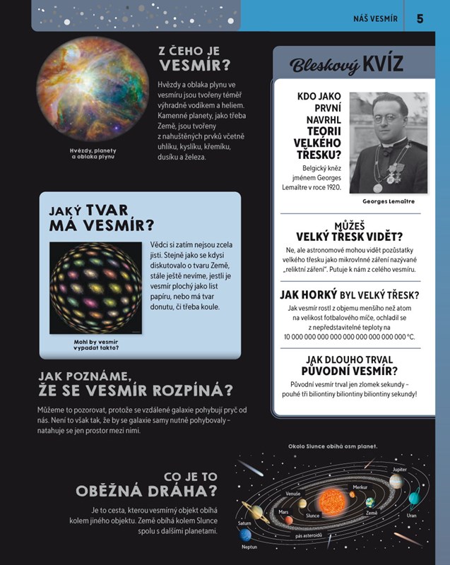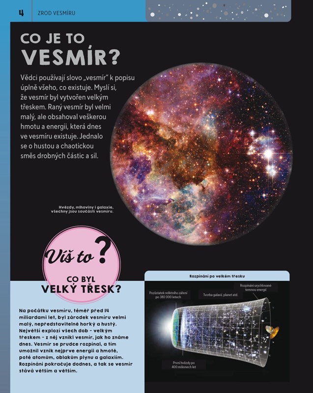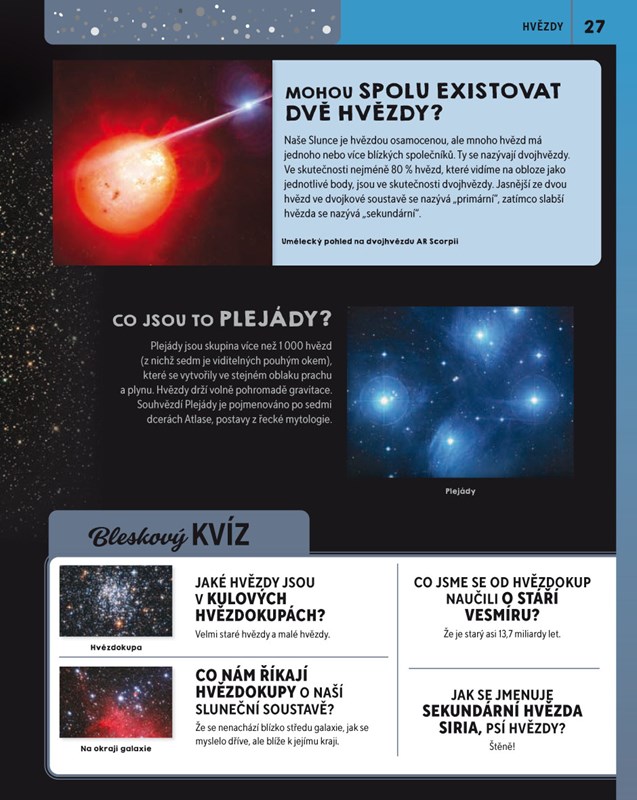 Co bylo před vznikem vesmíru? Jak se rodí a umírají hvězdy? Proč je Slunce žhavé? A jak ovlivňuje život na naší planetě? Knihy z populárně naučné edice Podstatné otázky a odpovědi přístupným způsobem zodpoví nejednu zvídavou dětskou otázku a díky stručným vysvětlujícím textům i názorným ilustracím školákům pomohou rychle se zorientovat v různých oblastech lidského vědění.