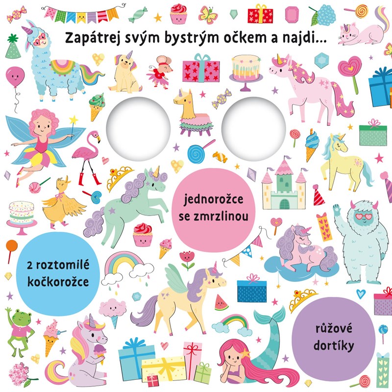 S touhle zábavnou knížkou se dá podniknout přímo detektivní pátrání mezi jednorožci! Hledání všem malým čtenářům zpříjemní všudypřítomné pohádkové bytosti s pohyblivýma očima. Procvičí si postřeh, slovní zásobu i jemnou motoriku.