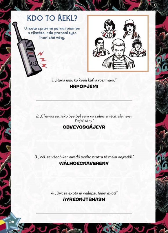 Jak dobře znáte Hawkins, jeho obyvatele a všechny podivuhodné události, které se tu odehrály? Kniha je doslova nabitá barevnými fotografiemi z ikonického seriálu a nabízí spoustu úkolů, které prověří vaše znalosti a zároveň skvěle pobaví děti od sedmi let – i fanoušky všech věkových kategorií.