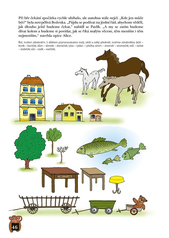 Někteří dospělí čtenáři se již setkali, a mají dobrou zkušenost, s edicí nakladatelství Computer Press určenou dětem. Mnozí už cíleně vyhledávají publikace autorky této knihy Jiřiny Bednářové, která se řadu let úspěšně zaměřuje na podporu rozvoje osobnosti dětí předškolního a mladšího školního věku. Je také možné, že již znáte soubor her a cvičení Mezi námi předškoláky pro tří- až pětileté děti, případně knihu pro děti pěti- až sedmileté. Prohlédnete-li si je, možná zjistíte, že pro vaše dítko jsou úkoly příliš jednoduché nebo poněkud obtížné. Všimnete si také, že věková období, pro něž jsou jednotlivé knihy určeny, se překrývají (3 až 5 let, 4 až 6 let, 5 až 7 let). Jak vidíte, autorka velmi správně pamatovala na vývojové zvláštnosti dětí, a tak upozorňuje nás, dospělé, na skutečnost, že každé dítě se vyvíjí v různých oblastech jinak. Některé je zdatnější v kreslení, jiné v počítání, další zná dříve barvy, je pozornější nebo méně pozorné, lépe či hůře mluví. Není tedy nutné se trápit tím, že naše holčička či kluk nezvládne vše jako jeho starší sourozenci nebo jiné děti stejného věku. Máme totiž zdatné pomocníky – zkušenou odbornicí připravené knihy, které pomohou tam, kde je potřeba. Navíc v nich, tedy i v tomto díle, naleznete zajímavý příběh, který děti učí pozorně naslouchat, veselé ilustrace, jež vedou dítě k rozvoji zrakového vnímání a kreslení (tedy i psaní) i k rozšíření slovní zásoby.