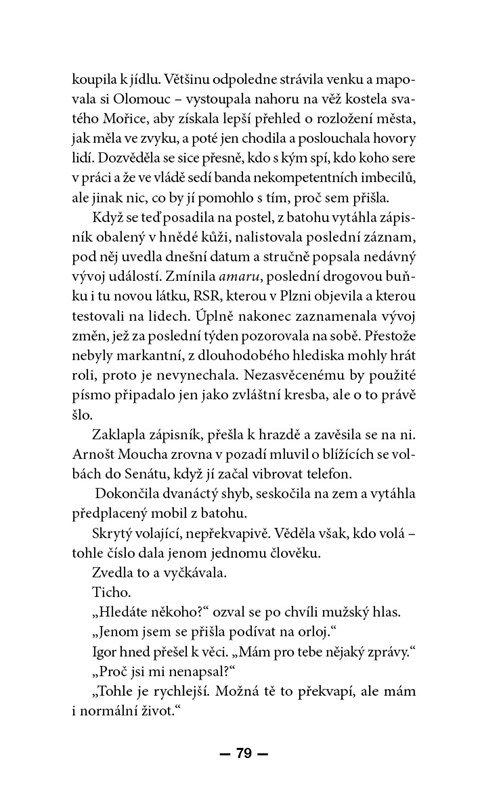Filip Skácel, soukromý detektiv a milující bratr, nečekaně přijde o svou šestnáctiletou nevlastní sestru Terezu. Během vyklízení jejího pokoje však zjišťuje, že na její smrti něco nesedí – a že ji možná vůbec neznal. Filip se ocitá ve světě drog, a čím hlouběji klesá do bahnitých vod olomouckého podsvětí, tím větších rozměrů celý případ nabývá. V rovnici se navíc objevuje další neznámá: záhadná žena Zoe, která by mohla jít po stejné stopě a která při svém pátrání volí přinejmenším kontroverzní postupy. Co je tato žena zač? Proč o ní neexistují žádné záznamy? A jak je spojená s Filipovou sestrou? Stop je zoufale málo, ale Filip přes narůstající nebezpečí zjišťuje jednu zásadní věc: všechno je úplně jinak, než kdy mohl tušit…