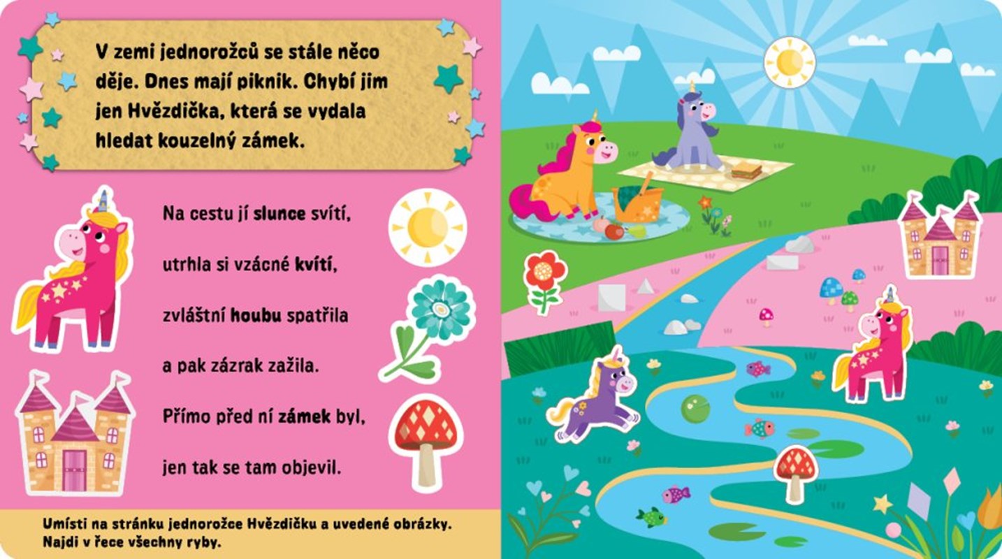 28 figurek z plsti. Stačí ti šikovné prstíky, tato knížka a zábava může začít. Vydej se do kouzelného světa jednorožců, ve kterém rozhodně není nuda. Jednorožci pořádají pikniky, houpají se na obláčcích, procházejí se po duze a zkoumají barevný svět ve svém zámku a okolí. Na každé stránce tě čekají nádherné ilustrace, zábavné úkoly a hlavně měkké plstěné samolepky, které můžeš snadno přemisťovat a znovu používat nejen podle zadání, ale také podle vlastní fantazie. Vytvoříš si tak spoustu vlastních příběhů.Knížka, která rozvíjí fantazii a jemnou motoriku je ideální pro všechny malé milovníky jednorožců od 3 let.
