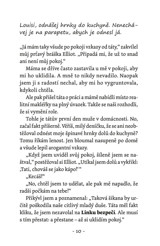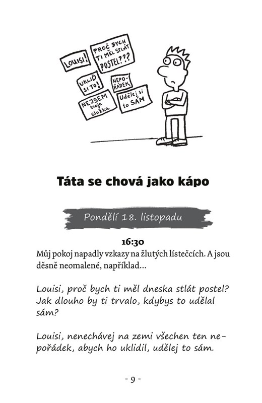 Louisův život se obrátí vzhůru nohama. Když jeho otec přijde o práci a stane se z něj muž v domácnosti, musí Louis čelit nepoživatelnému jídlu a všudypřítomným žlutým lístečkům se vzkazy, aby si uklidil pokoj. Jako by nestačilo, že ve škole lítá z jednoho průšvihu do druhého, hned po prvním rande dostane kopačky a že se navíc znemožní v televizním pořadu, který měl odstartovat jeho vysněnou kariéru komika. Podaří se Louisovi zachránit, co se dá?