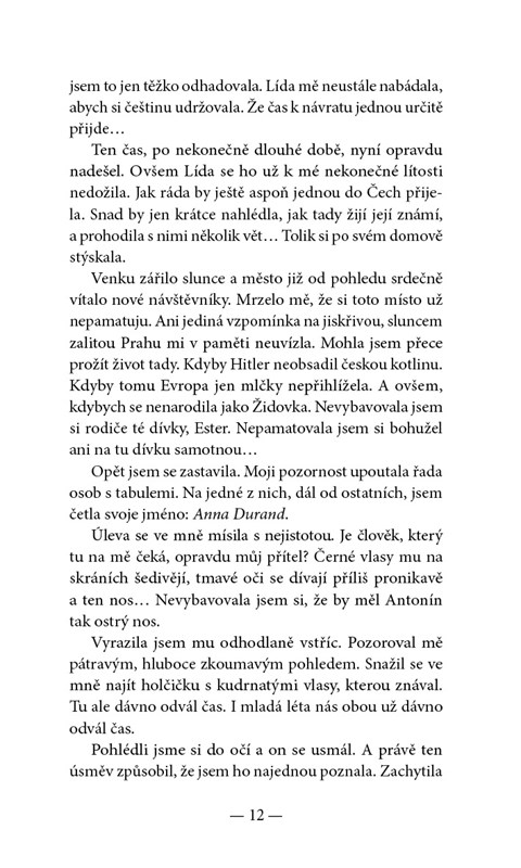 Má vůbec naději, aby ve vsi, která je pod neustálým dohledem gestapa a kolaborantů, přečkala bez úhony až do konce války? A je možné, aby v prostředí nejistoty, kde se nedá nikomu doopravdy věřit, našla svoji životní lásku?