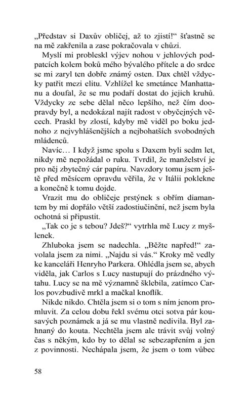 Poté co Willow Clarkovou podvedl přítel, touží po jediném – životním restartu. Chce se soustředit na novou práci v nejlepší realitní firmě na Manhattanu a konečně vydělat dost peněz, aby mohla rozjet vlastní podnikání. Rozhodně nestojí o románek s dalším lamačem srdcí, ani kdyby to byl její sexy šéf se zhýralou pověstí. Když ale Henryho Parkera vyfotí paparazzi se zfetovanou dcerou senátora, jeho otci dojde trpělivost. Henry musí předstírat, že se zasnoubil, a vést spořádaný život, aby napravil PR firmy. Potřebuje někoho s image hodné holky, která si po skončení dohody půjde po svém. Willow by peníze potřebovala, ale ještě více touží po zadostiučinění. Chce nevěrnému ex vytřít zrak. V jednom má ale jasno – mimo povolené zóny se jí Henry Parker nesmí dotknout.