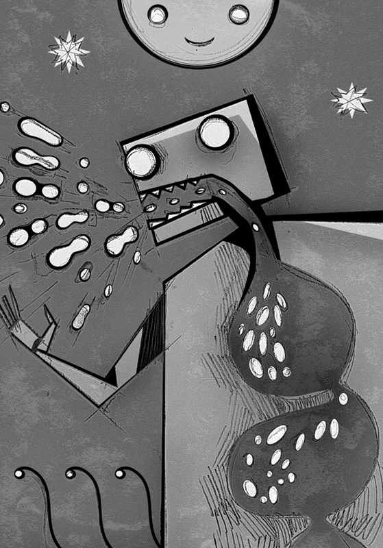 Slimův otec astronom ve stejné době jedná s mimozemšťany o meziplanetárním obchodu a společně s Redovým otcem průmyslníkem se chystají na schůzku s nimi.