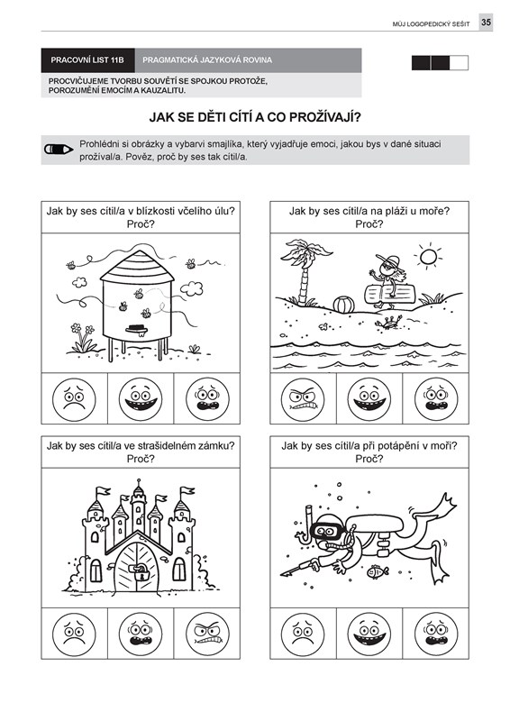 Můj logopedický sešit nabízí hravé a srozumitelné aktivity podporující rozvoj řeči, slovní zásoby, porozumění i správné výslovnosti u dětí od 4 do 6 let. Obsahuje 22 pracovních listů jednodušší úrovně doplněných podrobným metodickým návodem, který vysvětluje, proč je konkrétní jazykovou rovinu vhodné rozvíjet, jak při tom postupovat a jak úkoly přizpůsobit individuálním potřebám dítěte.
