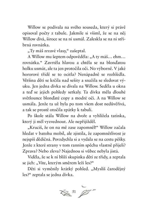 Co jen si má Willow počít s lesem, který zdědila po své tetě Alwině? Tetička jí zanechala také malý polorozbořený domek, ale hlavně – svou čarodějnou moc! Má Willow vůbec chuť přijmout toto dědictví i se vším, co obnáší? A k tomu všemu musí ještě nalézt další tři dívky, které v sobě stejně jako ona ukrývají čarodějnické nadání. Jenže kde je má hledat? A jak? Naštěstí na to Willow není sama – věrně ji doprovází tajemný lišák Rufus.