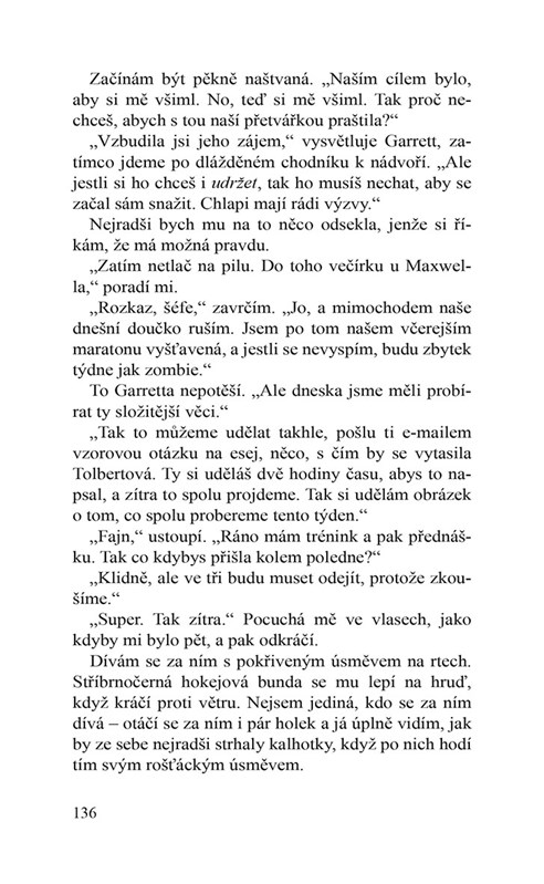 Stačil ale jediný polibek, aby si Garrett uvědomil, že už nic předstírat nehodlá. Teď ještě musí přesvědčit Hannu, že kluk, kterého chce, je ve skutečnosti on. A to tak snadné nebude.