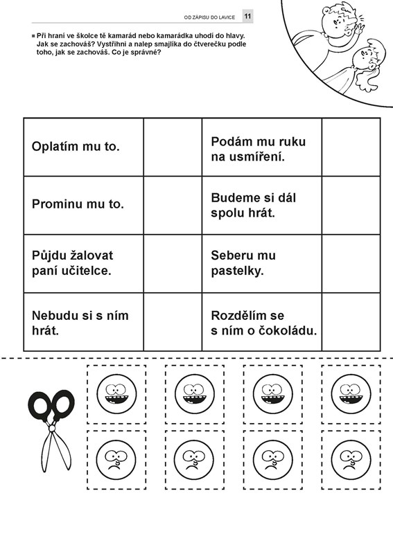 Další díl edice Od zápisu do lavice volně navazuje na předchozí sešity a obsahuje 35 pracovních listů se cvičeními, která zábavnou formou rozvíjejí sociální učení a emoční inteligenci. Dítě se na modelových situacích učí sociálním interakcím, komunikaci, řeči těla, rozpoznávání emocí, práci s nimi. Rozpoznává různé role, učí se úctě, spolupráci, vztahu k autoritám, dělit se, půjčovat si, být empatický, vcítit se do druhého a podpořit ho, povzbudit, respektovat. Učí se i důvěře a křehkosti přátelství, požádat o pomoc i pomoci. Učí se rozpoznat vhodné i nevhodné chování i odmítnout. Plnit si svoje úkoly, povinnosti a učit se pořádku. Vše za citlivého vedení dospělé osoby při běžných každodenních činnostech, poznávání a objevování reálného světa.
