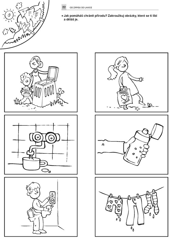 Sešit je rozčleněn do tematických oblastí rodina, kamarádi, příroda, školka, mé vnitřní já a zvířata.