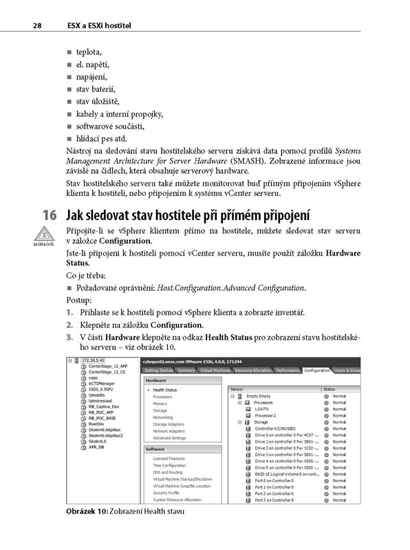 - Monitorovat stav serveru při připojení přes vCenter server