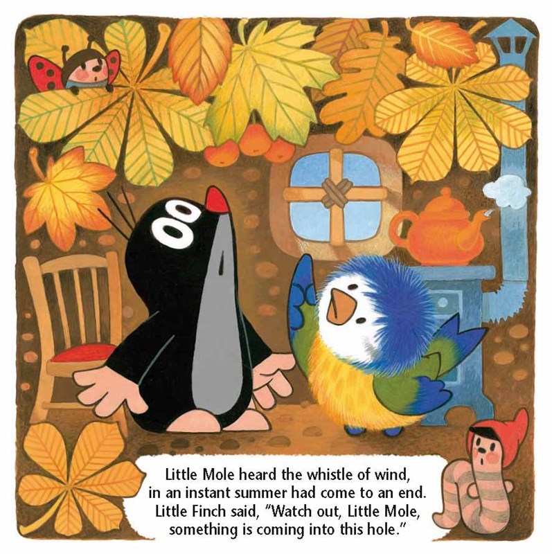 Copak se děje na podzim? Fouká ze strnišť a ze stromů nepadá jen listí – když máte domeček pod švestkou, padají vám na domeček i švestky, a tak se Krtek se sýkorkou rozhodnou uvařit švestková povidla, posléze napéct koláče a nakonec je z toho hostina pro všechna zvířátka.