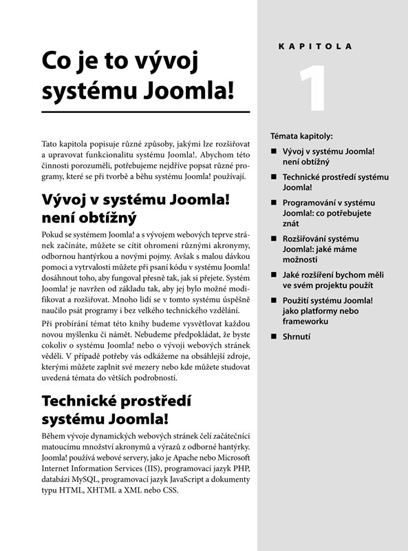 Postupné vysvětlení všeho, co budete potřebovat, uspořádání tohoto výukového průvodce a důraz na jednoduchou metodiku výkladu vám umožní ovládnout systém Joomla! rychle a dokonale. Každý krok průvodce je podán tak, abyste rozuměli tomu, co děláte a proč. Pokud jste zkušenější, můžete první dvě kapitoly jen prolistovat a začít až kapitolou třetí. Pokud nejste tak zkušení, bude pro vás nejlepší projít všemi kapitolami. Knihu lze navíc také jednoduše použít jako referenční příručku.