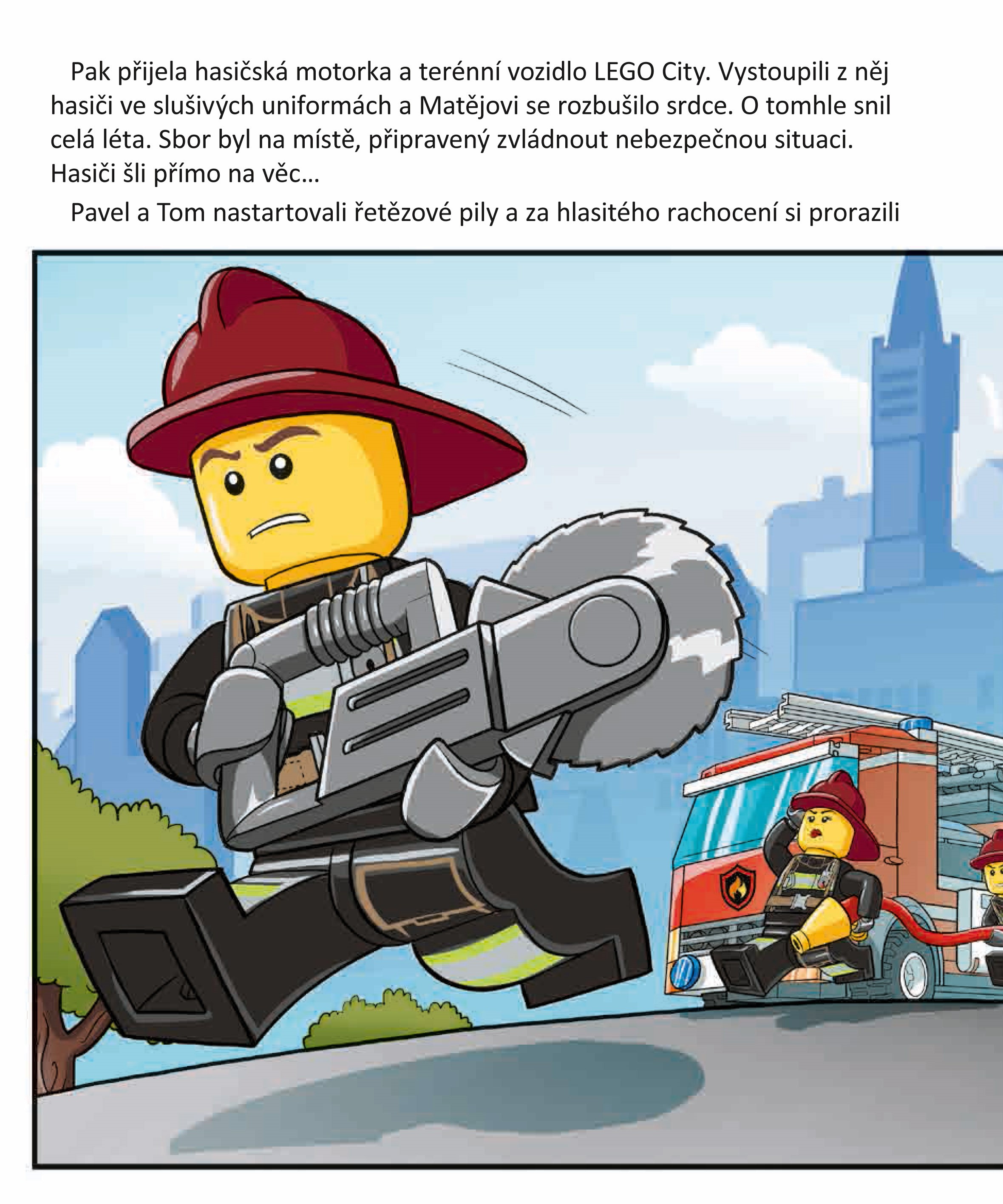 Navíc si z 20 dílků LEGO připevněných na obálce postavíš dvě fantastické minifigurky hasičů!