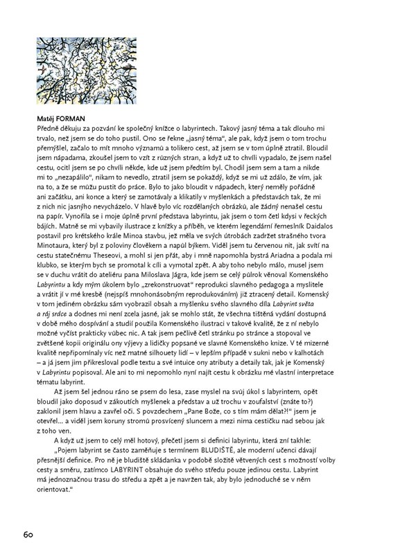 Čtenář má možnost prstem či ve fantazii procházet a proplouvat jedinečnými dvoustrannými ilustracemi, anebo se začíst do zasvěceného průvodního textu Václava Cílka, který je fenoménem labyrintů fascinován již dlouhá léta. A současný svět jako by se k principu labyrintů znovu vracel. Úvodní slova zamyšlení nad tajemstvím labyrintů od Václava Cílka nechť jsou pozváním k četbě a prohlížení této výjimečné knihy. Jsou též neotřelým vysvětlením, jaký je rozdíl mezi bludištěm a labyrintem: „Bludiště je hrozné místo podobné vězení, kde se člověk může navždy ztratit. Bludištěm se bloudí, labyrintem se prochází. Labyrint nás neočekávaným způsobem vede do skoro zapomenutého středu světa anebo možná vlastní bytosti.“