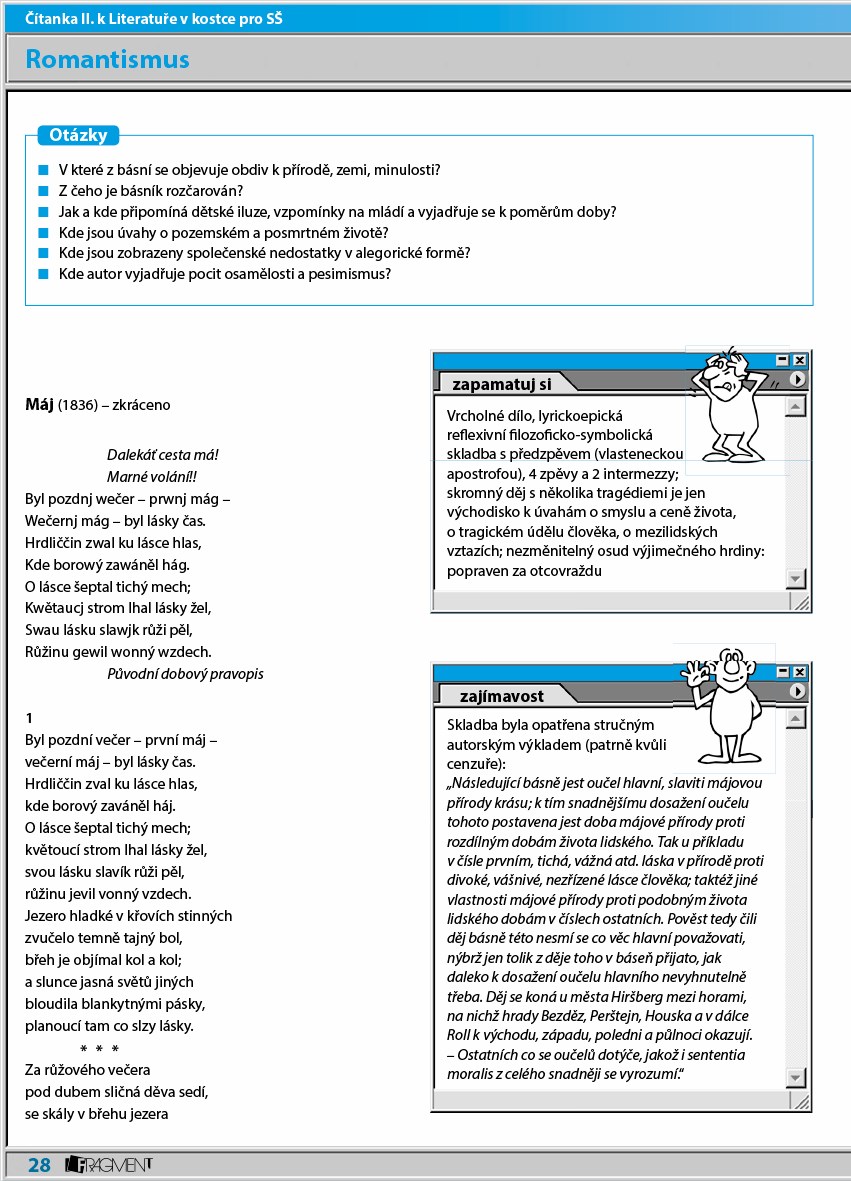 Studenti středních škol pozor! Získejte pečlivě vybrané ukázky textů, společně s metodickými úkoly pro práci s nimi ve II. dílu čítanky k učebnici Literatura v kostce. Tato učebnice je vhodným doplňkem nejen pro přípravu k maturitní zkoušce, ale pro všechny studenty SŠ.