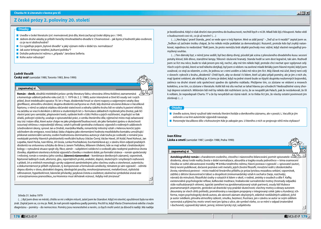 Studenti středních škol, pozor! Získejte pečlivě vybrané ukázky textů, společně s metodickými úkoly pro práci s nimi ve IV. dílu čítanky k učebnici Literatura v kostce. Tato učebnice je vhodným doplňkem nejen pro přípravu k maturitní zkoušce, ale pro všechny studenty SŠ.
