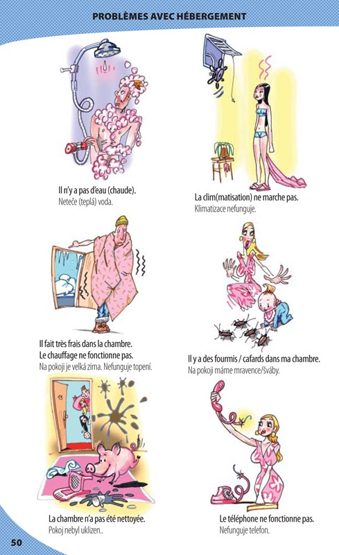 Šikovný pomocník obsahuje spoustu ilustrací znázorňujících situace, které musejí turisté často řešit: na letišti, na nádraží, v hotelu, v obchodech, v lékárně, na policii atd. Vedle ilustrací jsou uvedena slovíčka s výslovností, takže si je snadno přečtete a zapamatujete.