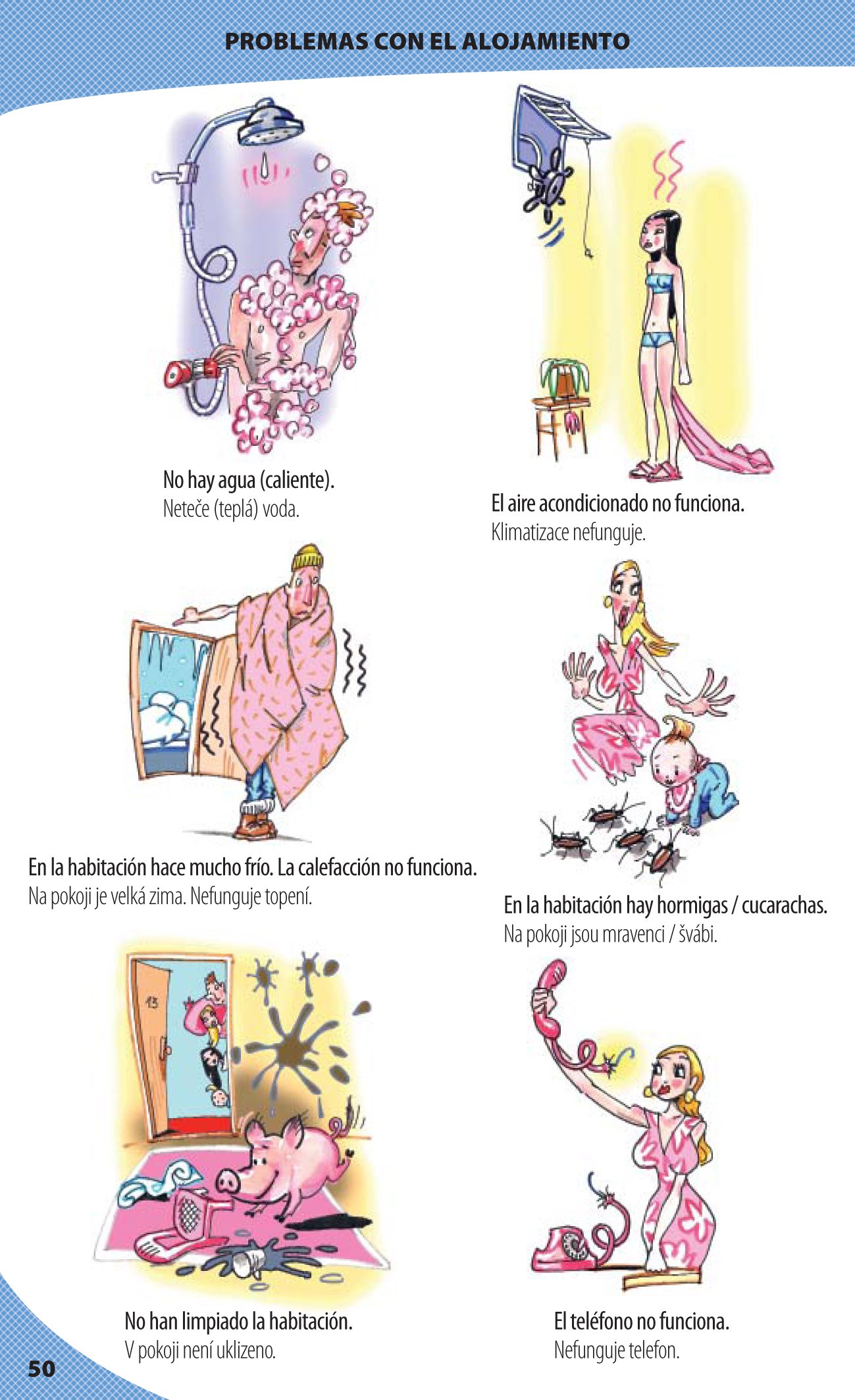Šikovný pomocník obsahuje spoustu ilustrací znázorňujících situace, které musejí turisté často řešit: na letišti, na nádraží, v hotelu, v obchodech, v lékárně, na policii atd. Vedle ilustrací jsou uvedena slovíčka s výslovností, takže si je snadno přečtete a zapamatujete.