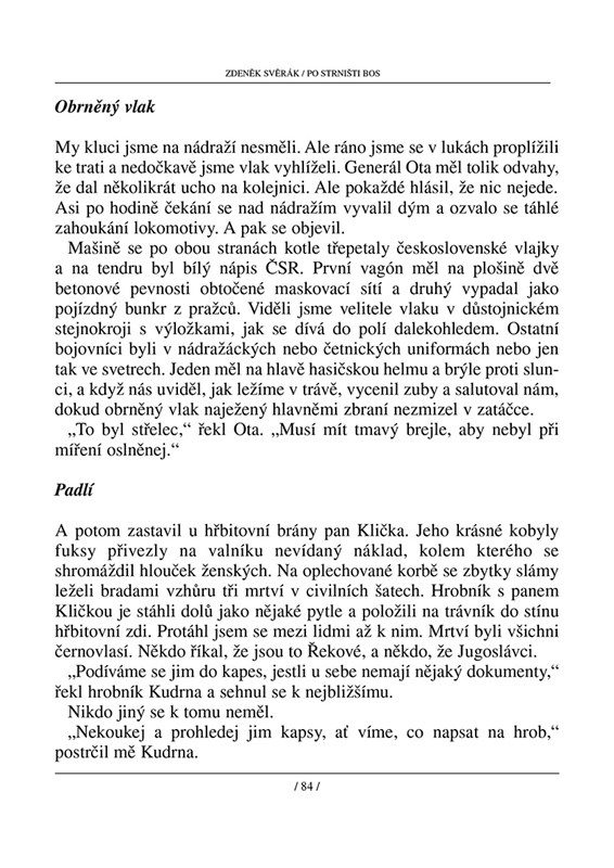 Tentokrát se můžete těšit na beletristické zpracování filmových povídek – předloh k filmům Kolja, Obecná škola a Vratné lahve; plus Po strništi bos, která na své filmové zpracování teprve čeká. Typický humor Zdeňka Svěráka a jeho hravost, kterou ve svých knihách používá, slibují poutavé čtení!