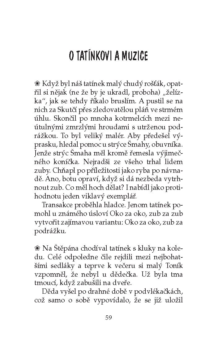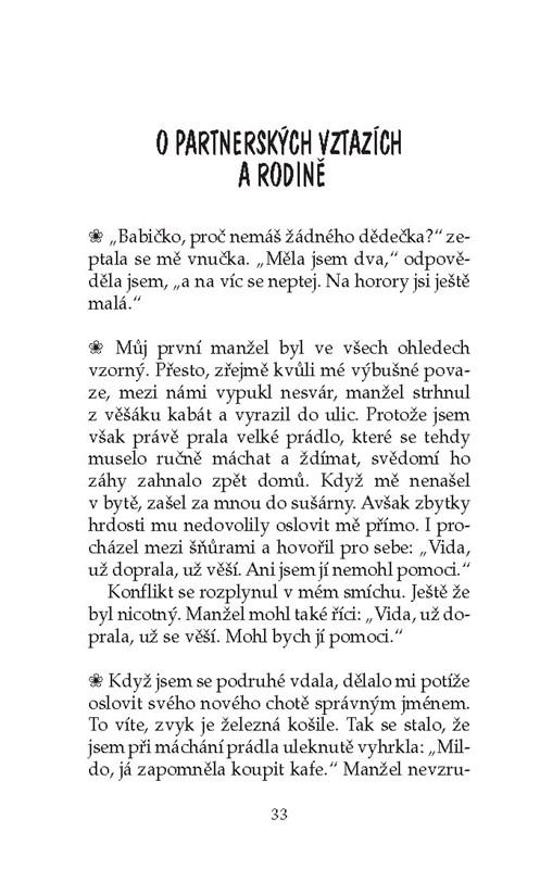 Kniha pro všechny, kdo mají rádi svěží humor Ivanky Deváté. Nejedná se zde o klobásky nebo koláčky, ale o další veselé historky ze života oblíbené spisovatelky a herečky a jejího bratra, které vás rozesmějí i potěší: příběhy z divadelního prostředí, ale i ze všedních dnů – rodinné legrácky, historky a komentáře...