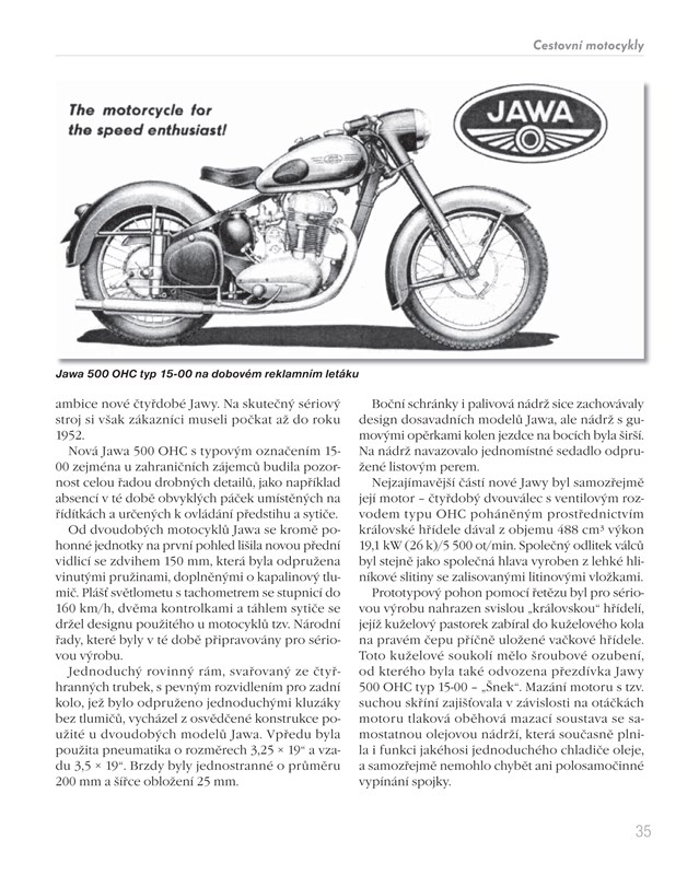 Kniha, která potěší všechny příznivce jedné stopy a zvláště pak fandy legendární značky Jawa. Chronologicky seřazená historie a popis jednotlivých modelů napříč celým výrobním spektrem až do současnosti - od cestovních motocyklů přes prototypy, malé motocykly, závodní a soutěžní stroje až po automobily - Vás podrobně a čtivou formou seznámí se značkou, které vdechl život její zakladatel František Janeček už v roce 1929.
