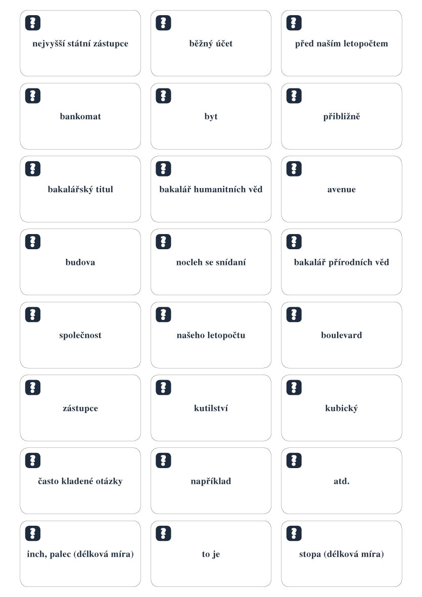 V sadě slovíček pro pokročilé najdete výrazy, které se vám budou hodit v běžném osobním i pracovním životě. Při cestování, návštěvě koncertu či divadla, na úřadě, při opravě auta a v mnoha dalších situacích.