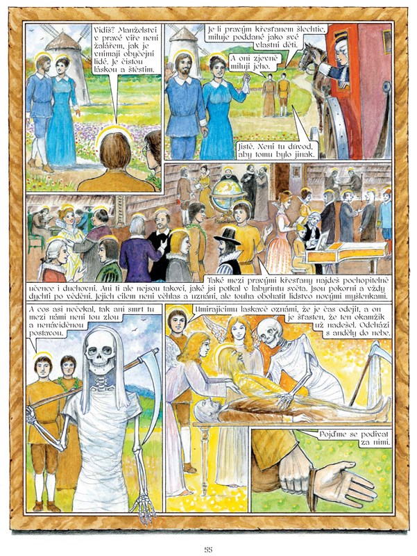 Záměrem autorů této knihy bylo, aby náš komiks svým tradičním výtvarným i jazykovým pojetím co nejvíce ctil alegoričnost a v mnoha místech naopak doslovnost původního Komenského díla. Ovšem také to, aby byl srozumitelný pro dnešního čtenáře a aby náš barokní literární poklad pro sebe objevili i lidé, které by původní text svou složitostí od četby dozajista odradil. V neposlední řadě jsme se snažili také o to, aby byl komiks zábavný a překypoval detaily, s nimiž se čtenář může bavit dlouhé hodiny. Komiks má 55 stran a téměř každá strana odpovídá jedné kapitole původního díla. V samotném závěru knihy najdete plný text původního díla, abyste jej mohli srovnat s naším komiksem.
