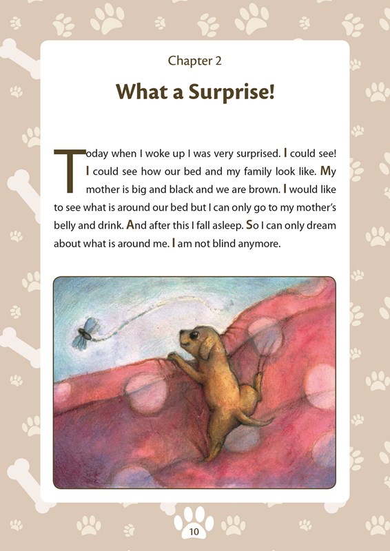 Dvojjazyčná anglicko-česká knížka pro děti je zdrojem zábavy i výuky angličtiny a může se stát odrazovým můstkem na cestě do světa jazyků. Stejný příběh o malém štěněti je vyprávěn dvakrát: v češtině v plném rozsahu a v angličtině ve zkrácené a zjednodušené verzi doplněné obrázky. Kapitoly v češtině jsou upraveny pro snadné čtení, jsou napsány krátkými větami tak, aby dítě snáze porozumělo textu.
