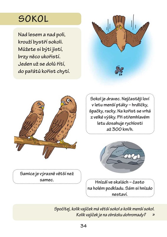V této knížce najdete jednoduché, snadno zapamatovatelné básničky a spoustu barevných ilustrací s informacemi ze života zvířátek. Ke každé říkance je navíc přiřazen celostránkový obrázek s úkolem, kde si procvičíte svoje hlavičky a naučíte se spoustu věcí, které se vám budou hodit třeba ve škole.