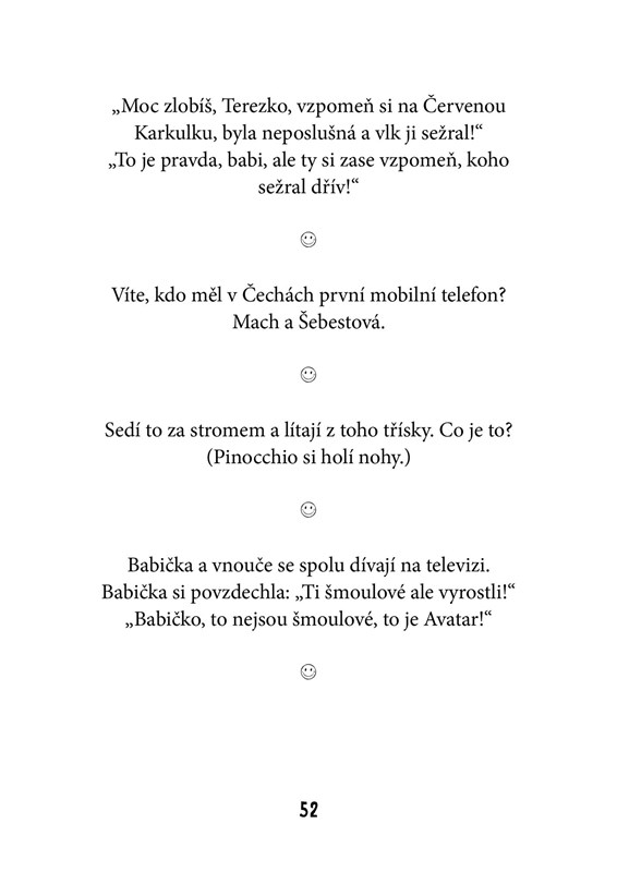 Tato kniha plná vtipů udělá radost všem. Ať už se začtete do vtipů o Pepíčkovi, ze školy, o prarodič...