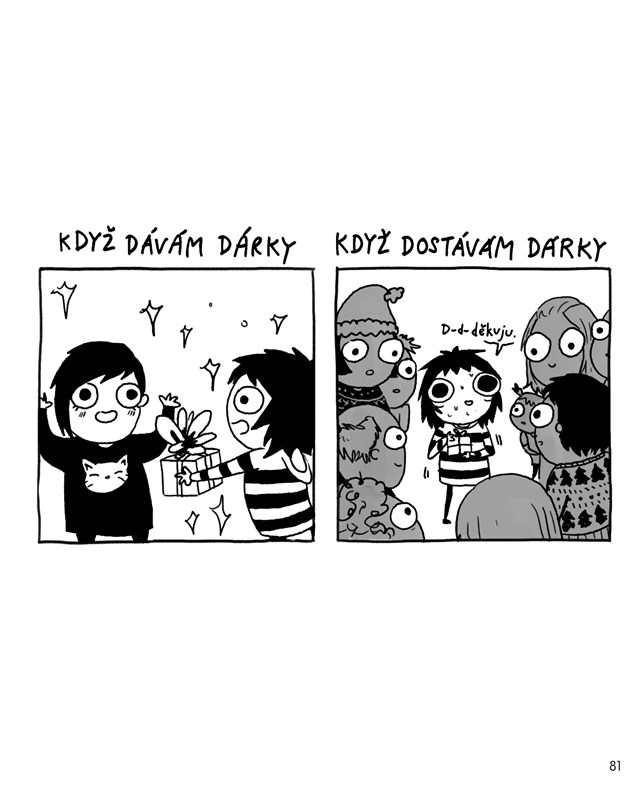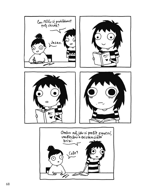 Tahle kniha je pro ty ostatní z nás. Tenhle komiks je pro všechny, kdo dokážou proflákat celé víkendy na internetu, pro které je držení se za ruce na ulici s naprosto úchvatným klukem nesnesitelná agónie, pro všechny, kdo sní o tom, že celý den zůstanou doma a budou se válet v pyžamu. A pro všechny, kdo přemýšlejí, kdy přesně vlastně ta dospělost začíná. Jinými slovy pro nás, kteří prožíváme hrůzy a trapnosti dnešního mladého života.