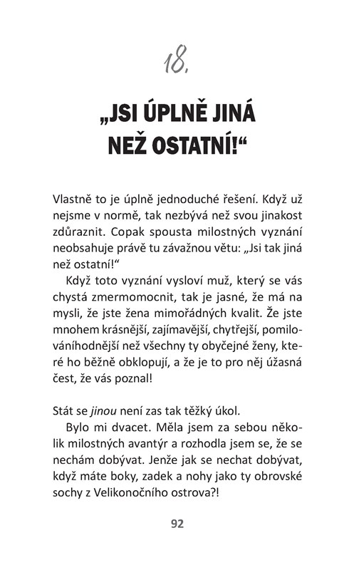 Přišla jsem na to jako blesk z čistého nebe. Abych byla šťastná, potřebuju, aby mne někdo miloval, abych milovala já jeho a aby mi to slušelo! A když jsem si své touhy takhle zformulovala, bylo mi jasné, co musím udělat! A o tom je můj příběh. Dalo by se to shrnout do jedné věty: Budu vám vyprávět, jak jsem konečně našla ten ideální model!