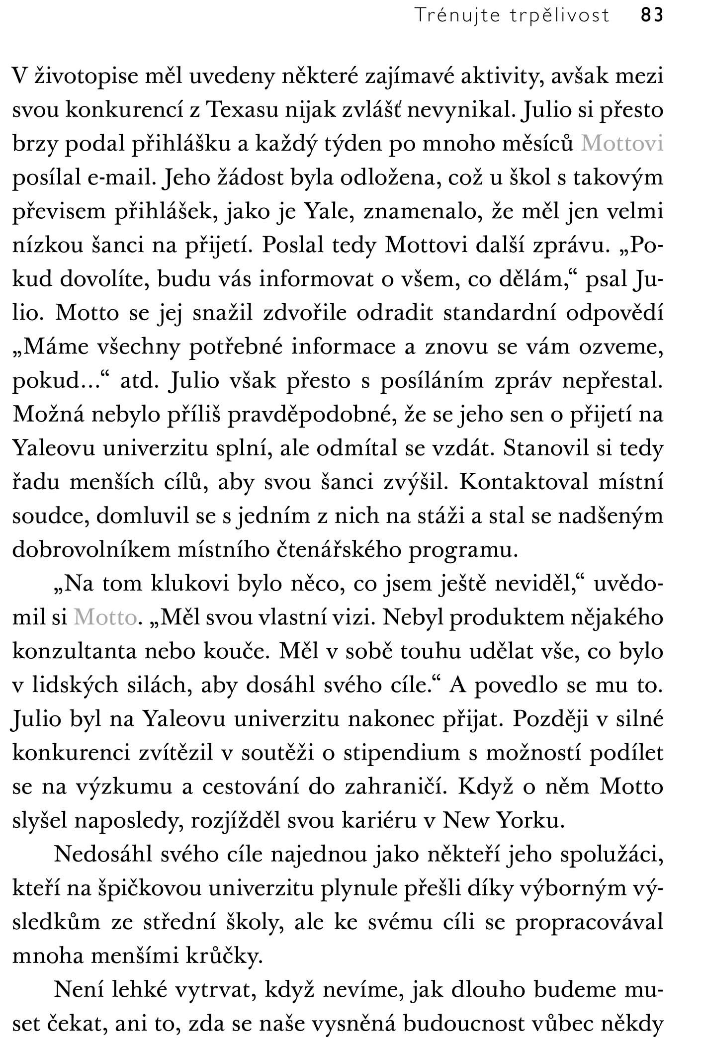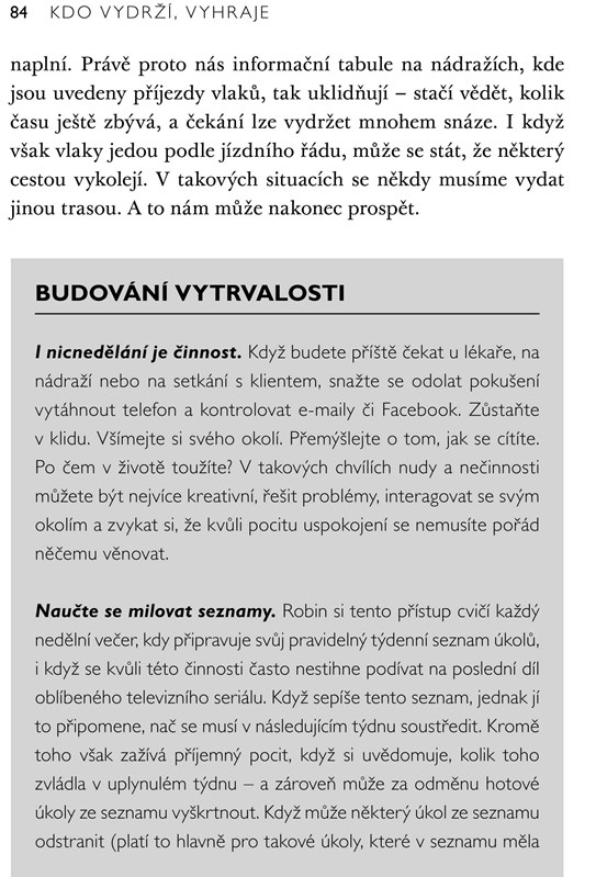 Jenomže právě vytrvalost, úsilí a ona zmíněná tvrdá práce, která není ani cool, ani sexy, je přesně to, co zase přichází do módy. Zaměstnavatelé, rodiče, odborníci i politici zkrátka docházejí dějinnou smyčkou opět k názoru, který ještě před padesáti lety nikoho ani nenapadlo zpochybňovat: že bez pevné vůle a odhodlání to prostě v životě nefunguje.