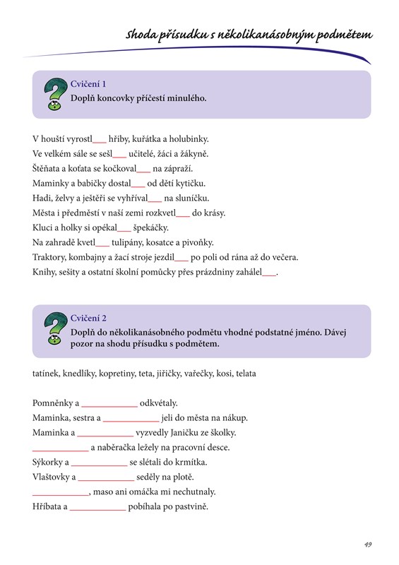 • vysvětlení pravidel pro shodu přísudku s podmětem,
