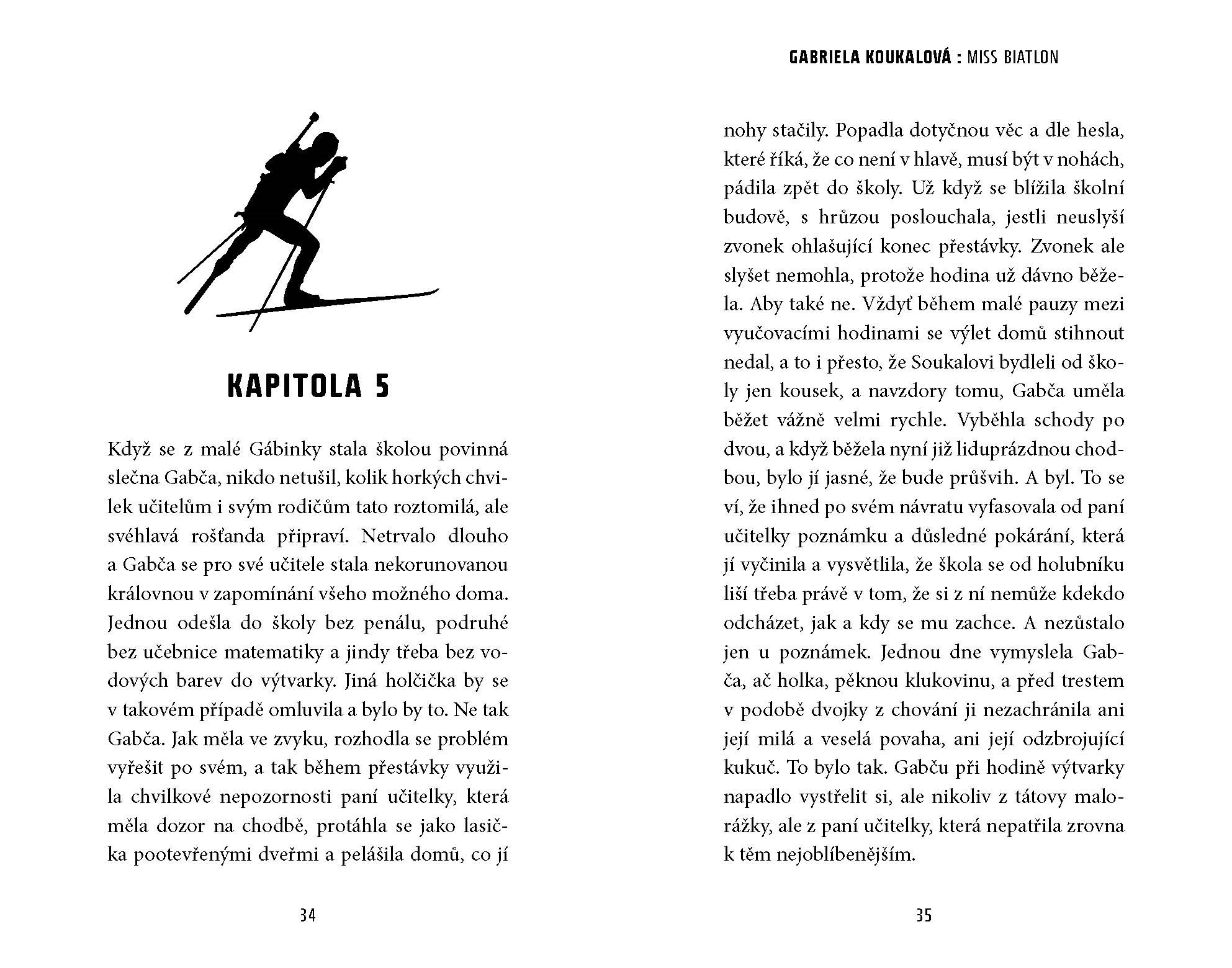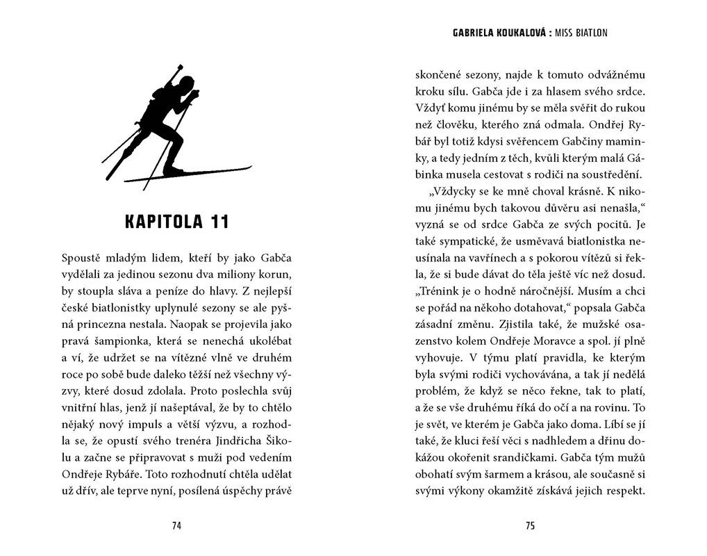 Pozoruhodný příběh Češky, která dobývá svět. Gabriela Koukalová je populární nejen proto, že je sympatická, krásná a úspěšná, ale hlavně proto, že je velká bojovnice. A take nesmírně talentovaná. Dělá sport, který je velmi nevypočitatelný. Sport, u něhož se nedají předpokládat výsledky. A ona přesto vítězí. Tato kniha vám přiblíží zrod této sportovní hvězdy od jejích prvních krůčků až na nejvyšší stupně vítězů.
