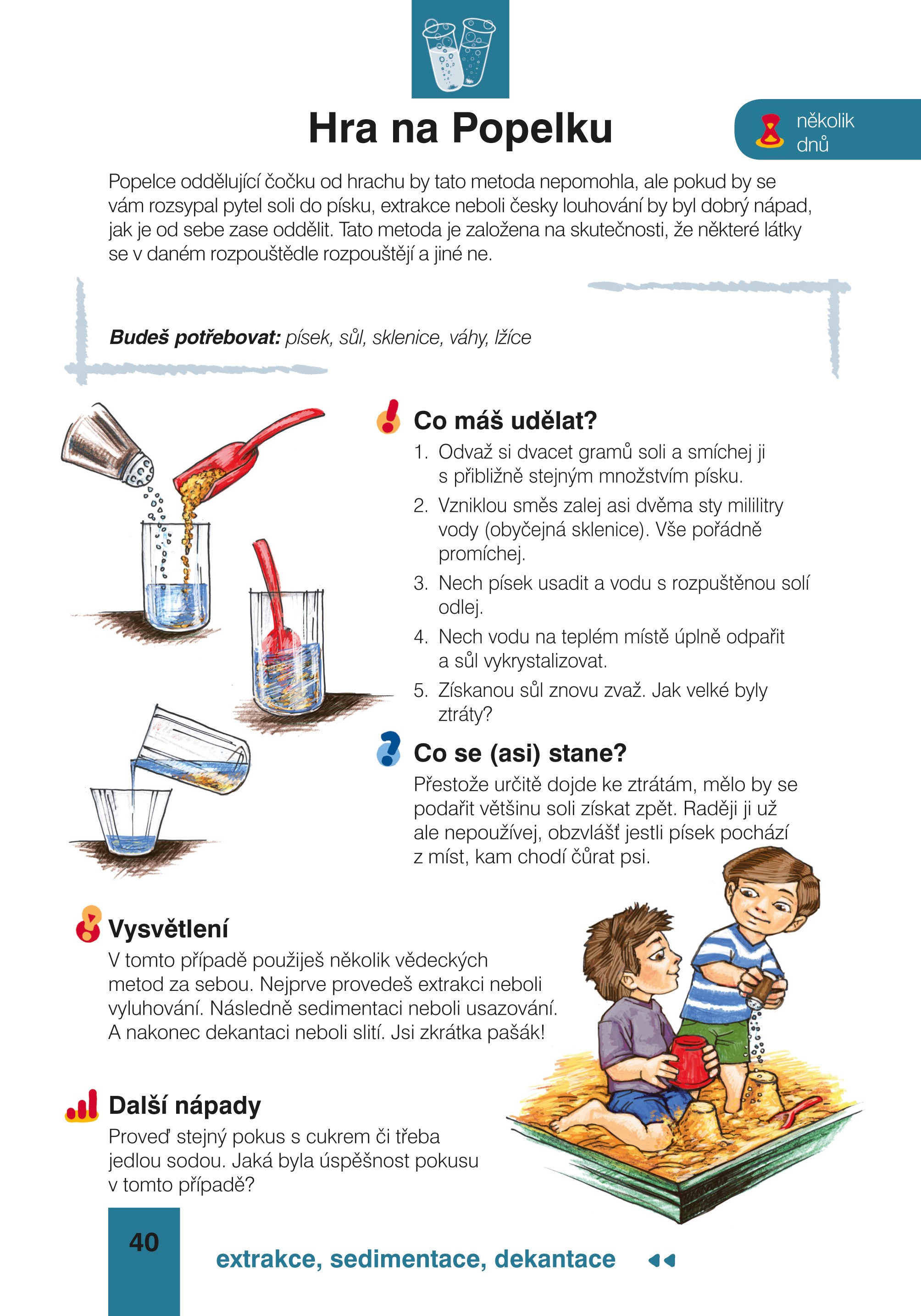 Budete zkoumat základní fyzikální i chemické vlastnosti sloučenin, odhalovat skrytá tajemství, pozorovat přírodní děje, oddělovat složky směsí, ale řada pokusů může posloužit i k malé domácí show.