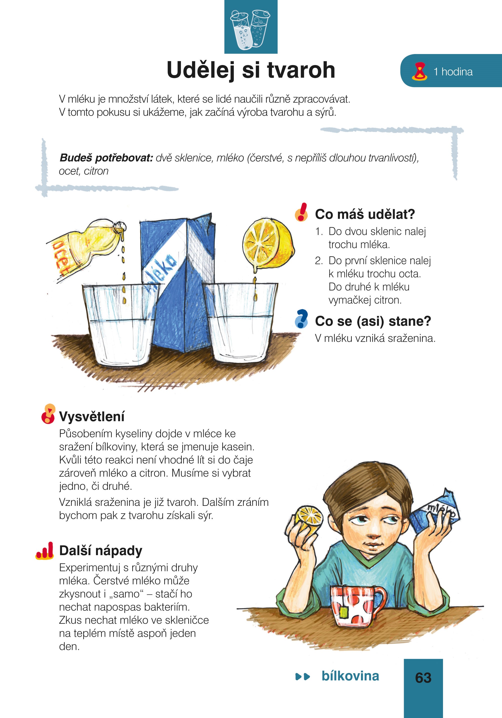 Vyrobte domácí limonádu, máslo nebo tvaroh, rozpusťte želatinového medvídka, udělejte si zimu větší než v lednici, najděte škrob v salámu, pohrajte si s barvivy. Zkrátka si to užijte!