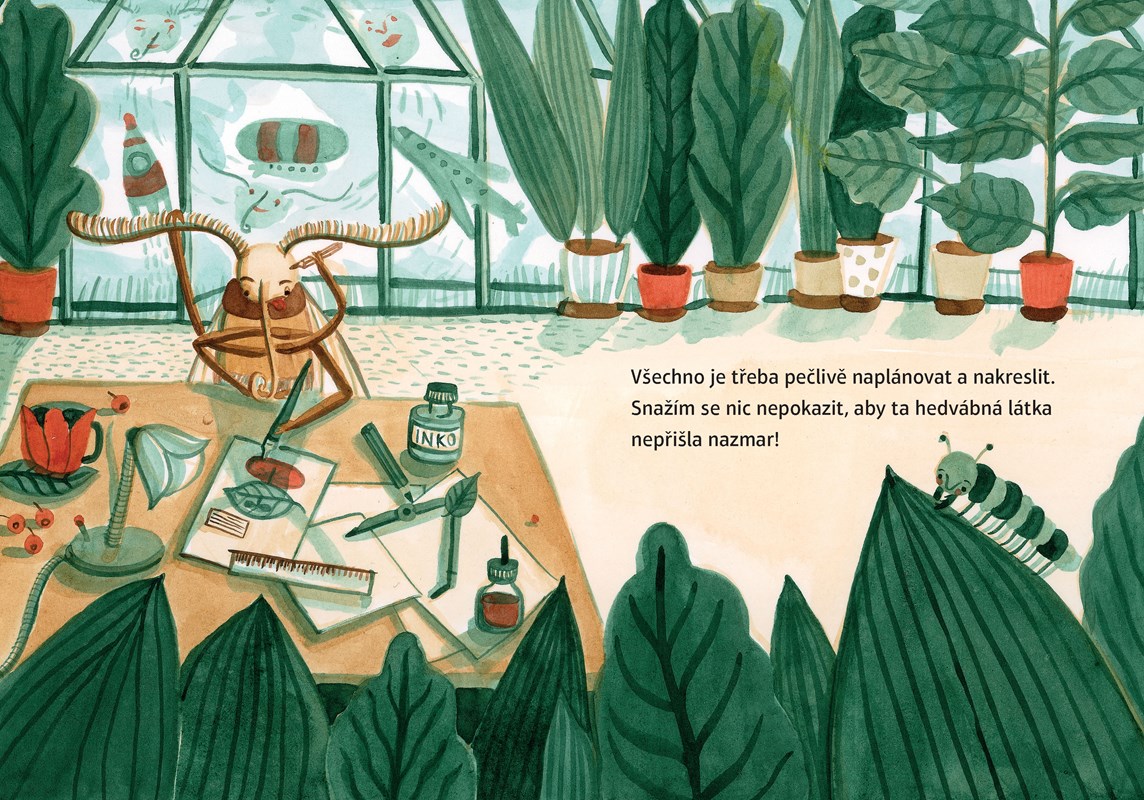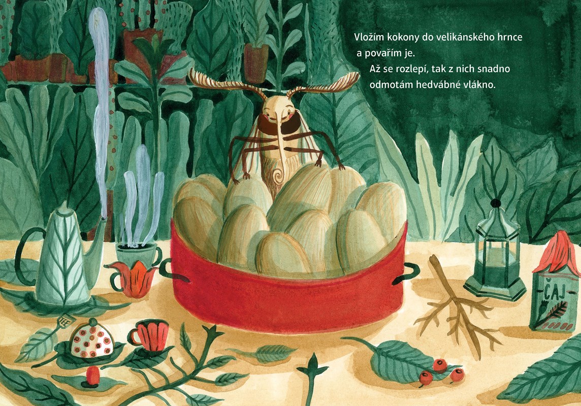 Humorné a poučné leporelo o tom, jak se dělá hedvábí.