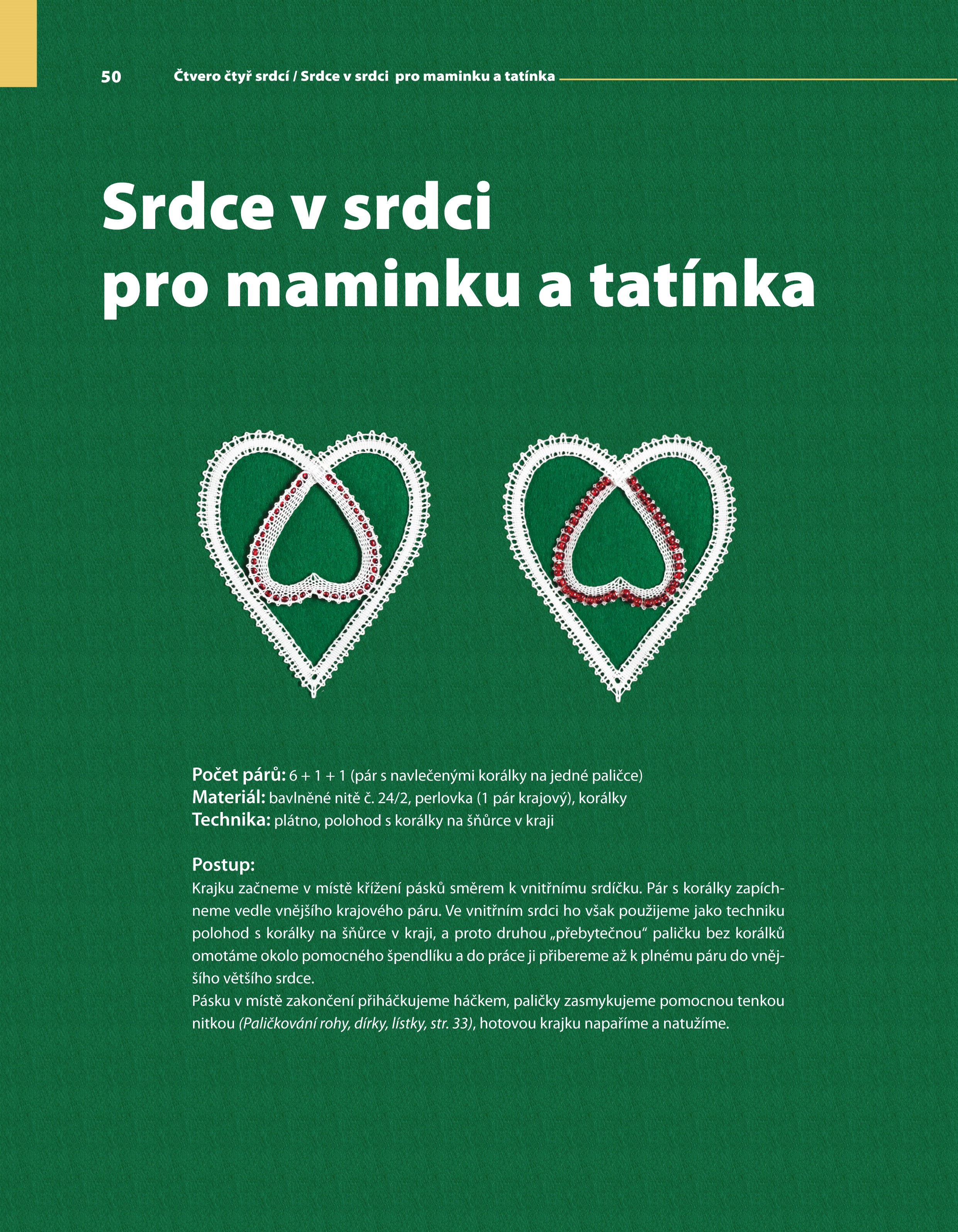 Úspěšnou řadu knih o paličkování rozšiřuje páté pokračování pod názvem Paličkování s láskou. Autorka a zkušená krajkářka Lenka Malátová se v knize vyznává ze své celoživotní lásky k řemeslu, pro něž nadchla již mnoho svých kurzistek. Tímto dílem se obrací na pokročilé krajkářky, které už mají s paličkováním bohaté zkušenosti. V knize si však najdou své i začátečnice – těm nabízí k vyzkoušení přehledně zpracované techniky. Zvláště se věnuje vkládání korálků do krajky a také polohodu, který představuje trochu jinak. Celou knihou se vine motiv srdcí a ženských andělů. Srdce jako symbol lásky je zpracované v mnoha variantách věnovaných autorčiným blízkým. Ke každému motivu je uveden podrobný postup, podvinek a fotografie hotového díla. V kapitole Andělky nejen pro pondělky připravila krajkářka pro své čtenářky množství složitějších technik. Knihu doplňuje řada krásných fotografií hotových děl. Ty vás mají inspirovat a motivovat k tvorbě vašich vlastních výrobků – krajek dělaných s láskou a pokorou ke starému krajkářskému řemeslu.