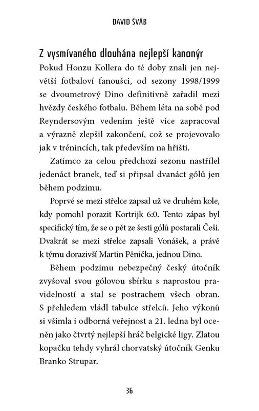 Biografická kniha s příběhem o jedné z nejvýraznějších postav české fotbalové historie – Jana Kollera. Je to příběh fotbalisty, který vyrostl na vesnickém hřišti,procházel okresními týmy, aby se přes angažmá ve Spartě dostal do zahraničí, kde se stal hvězdou a později i nejlepším střelcem v historii české reprezentace. Také je to příběh vyučeného automechanika, kterému kromě velmi dobrých fyzických dispozic pomohla k hvězdné kariéře určitá porce náhody, kdy několikrát byl ve správnou dobu na správném místě.